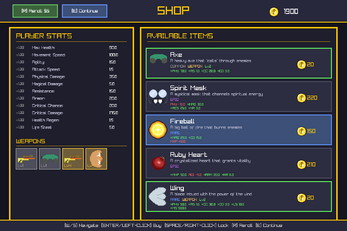 - Procedurally generated shop inventory each round